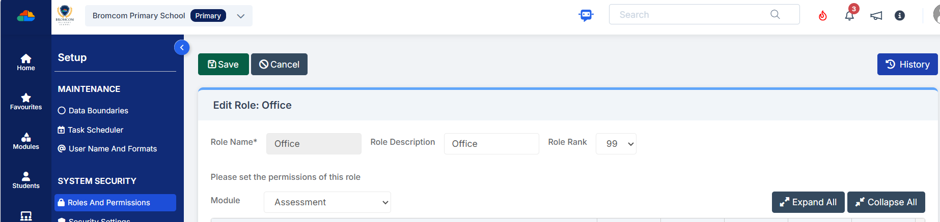 Scroll down to Routines and ensure Assessment Sheets List is ticked as Access.