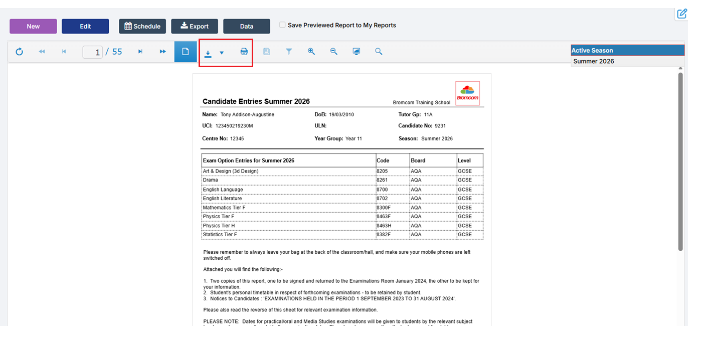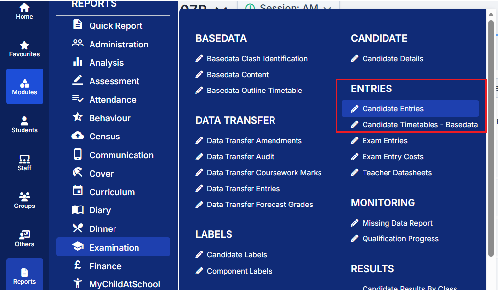 Once the Exam Entries have been made use this section to produce the following two reports.