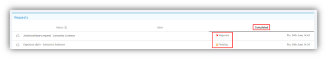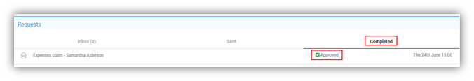Once done the Request will be moved from the Inbox section to the Completed section. The status will be displayed, if the Request needs to be Approved by more than one person it will still show as Pending.