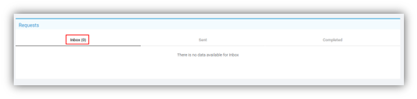 The Requests tab displays the Requests you have made, the results of the Requests. If you have not been listed to Approve Requests the Inbox and the Completed sections will remain empty. By default the Requests page will open on the Inbox.