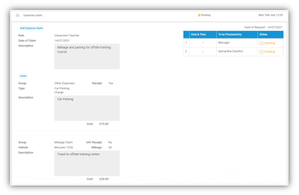 When a Request has been made, if the Approval Alerts options under the Manage Approval Processes section are Active, an Alert and e-mail will be sent to you, confirming the type of Request you have sent.