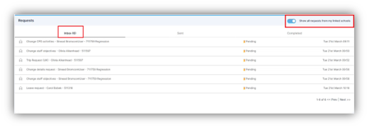 Note: For MAT Vision and Single Sign On users – you will also see a toggle labelled Show all requests from my linked schools in the top right-hand corner to see entries from all the schools associated with your log in the Inbox, Sent, and Completed tabs.
