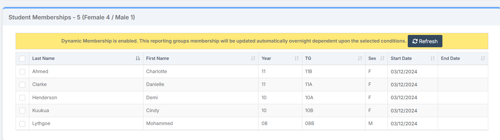 Note: Users will only need to click Refresh to update the Student Membership table when they wish to view the latest update on the same day.