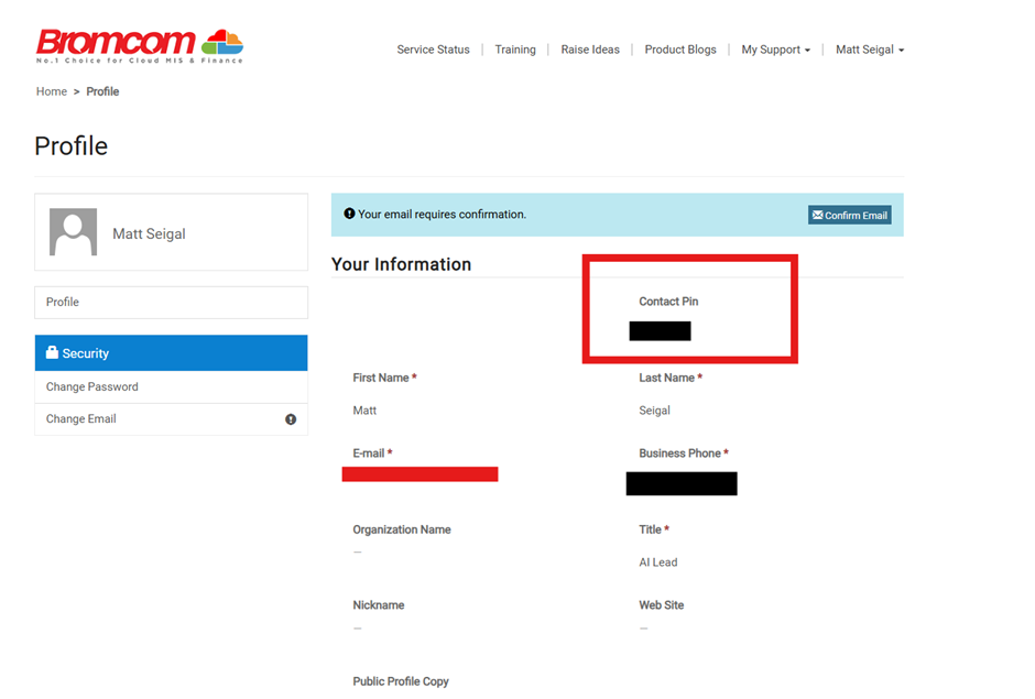 - This PIN is visible within the Support Portal under the Profile section.