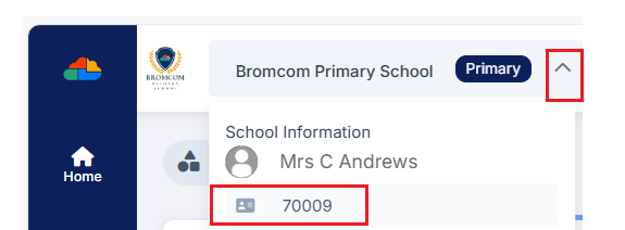 - Your Site ID can be found within the MIS by clicking on your school name in the top-left corner.