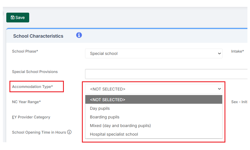 Error 11233 Special Schools Onlycheck Accommodation type* is populated